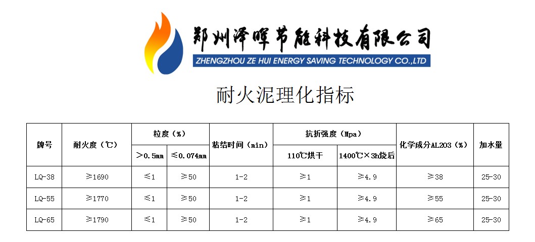 耐火泥理化指標(biāo)